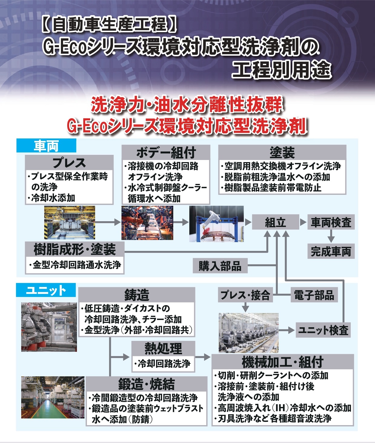 G-Ecoシリーズ環境対応型洗浄剤の生産工程別用途 ⇒ http://www.automobility.global-eco.nagoya/