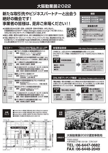 10月12(水)~13日(木)にマイドームおおさか展示ホールで開催される【大阪勧業展2022】へ出展します!
