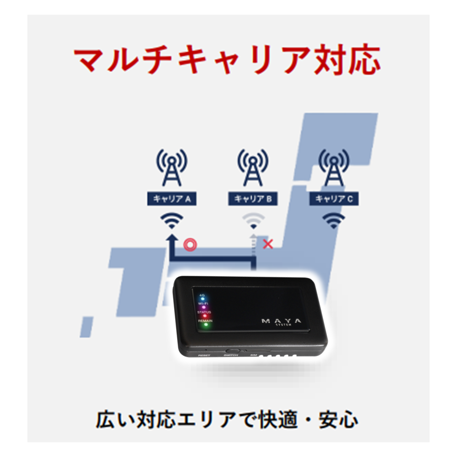 docomo・SoftBank・auの広い対応エリアで、快適安心にご利用いただけます。