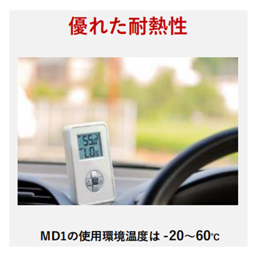 使用環境温度は-20℃~+60℃と、猛暑や氷点下になった車内へ置きっぱなしにしていても、