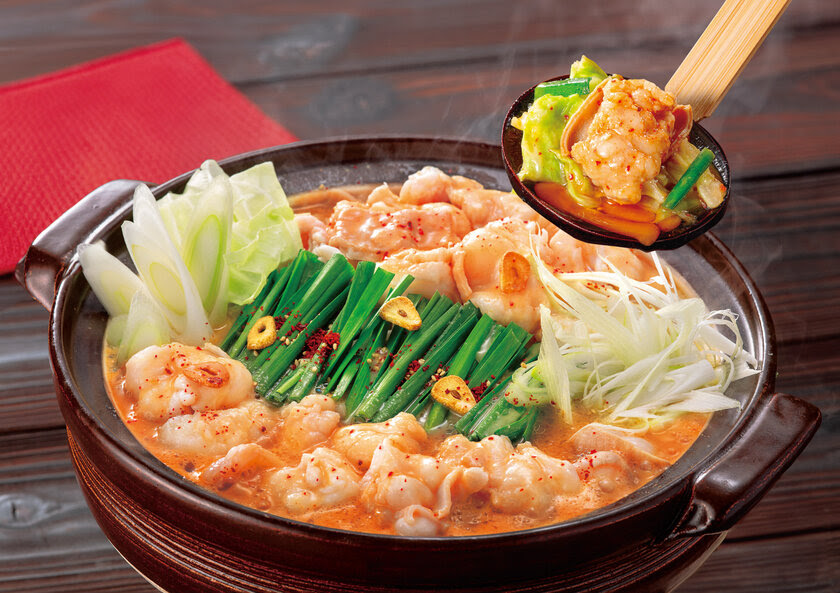 麦味噌と赤から味噌をブレンドした、もつ鍋専用の特製スープがホルモンの甘みを引き立てま