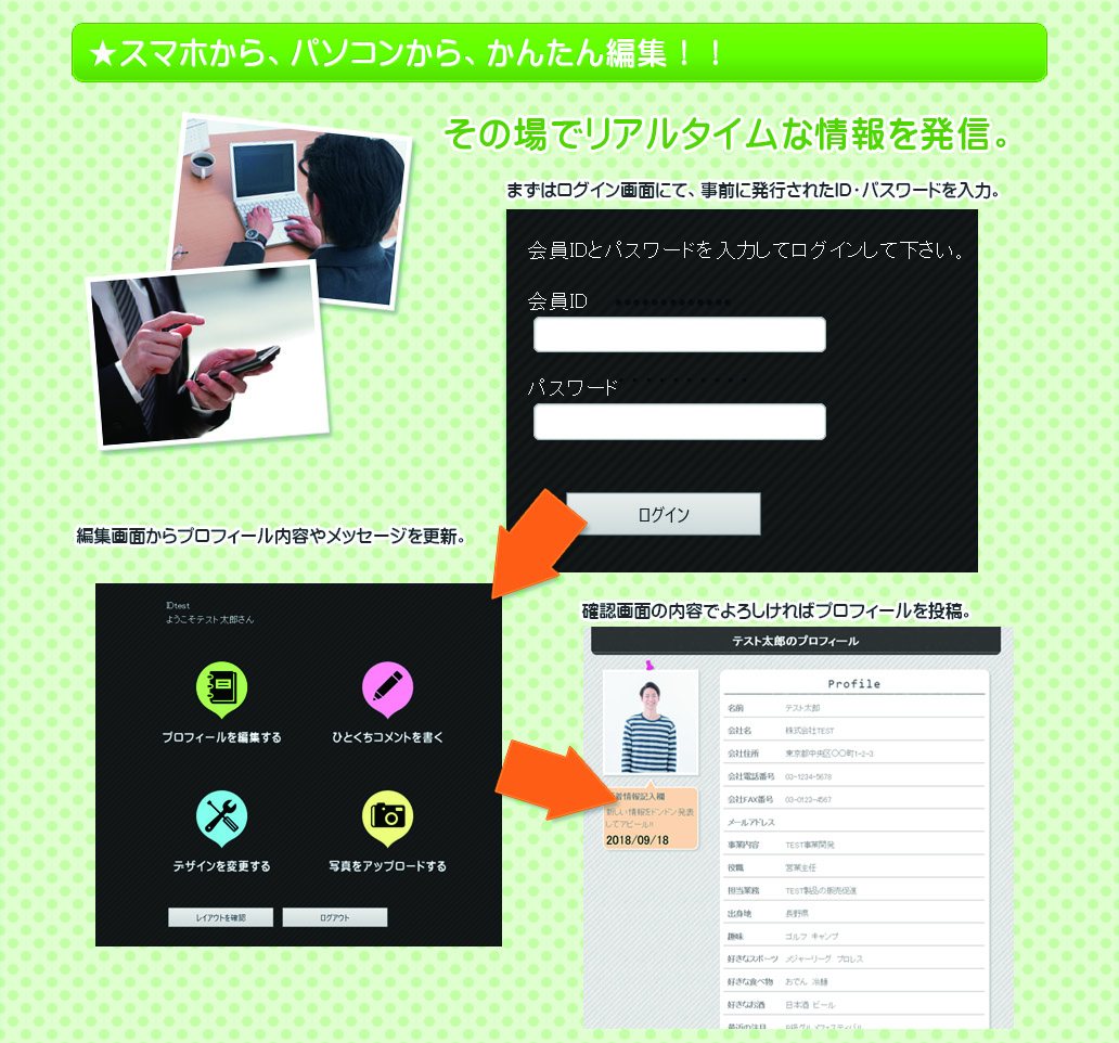 営業活動において必要な会社概要ではない 『自分概要』 のアピールができるシステムです。