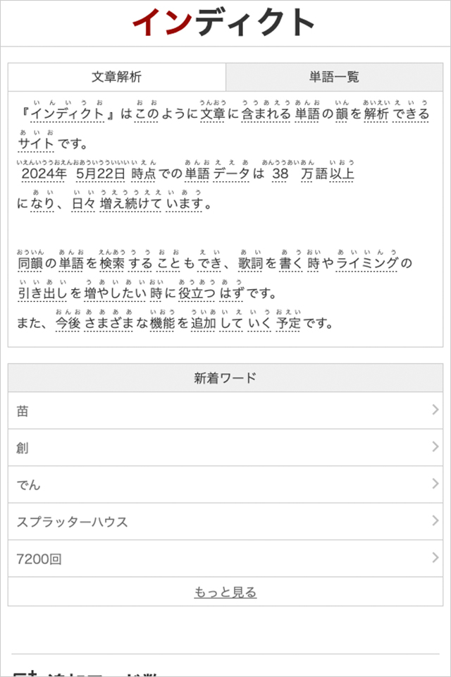 『インディクト』は、ユーザーが日本語の韻を簡単に検索し、適切な韻を見つけることができる便利なツールです。