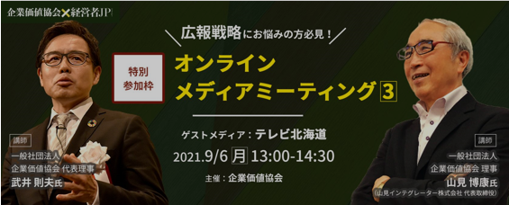 【KEIEISHA TERRACEセミナー】企業価値協会主催 <オンラインメディアミーティング>特別参加枠 ゲストメディア:共同通信社