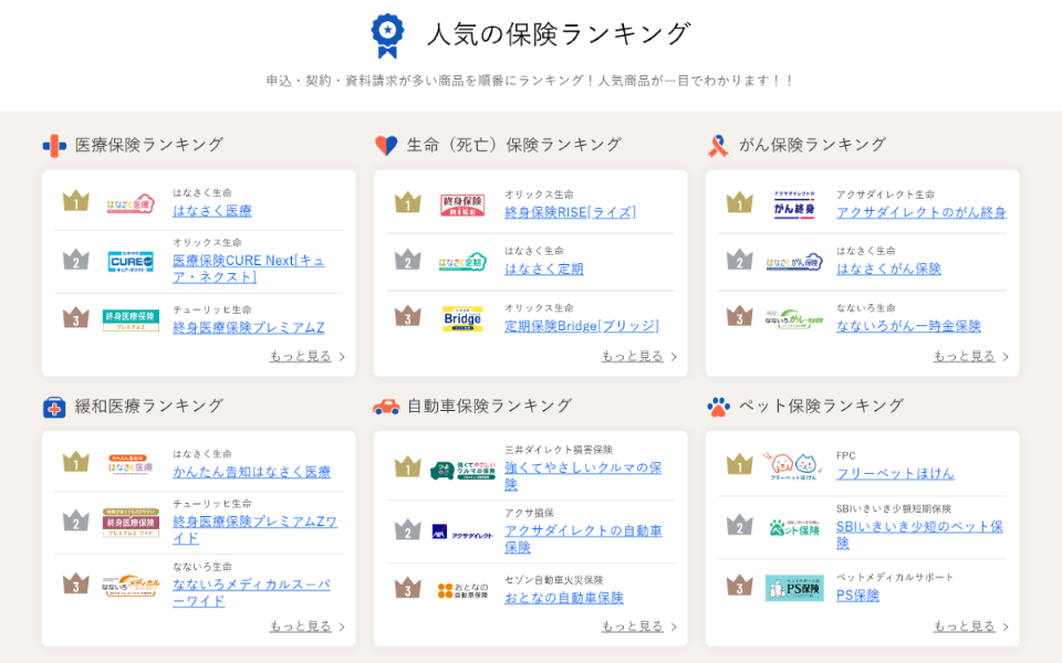 ▍医療保険ランキング