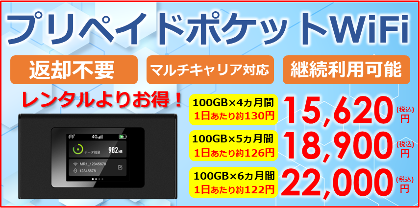 レンタルだと端末を返却しなければなりませんが、『プリペイドポケットWiFi』は返却の必要がありません。