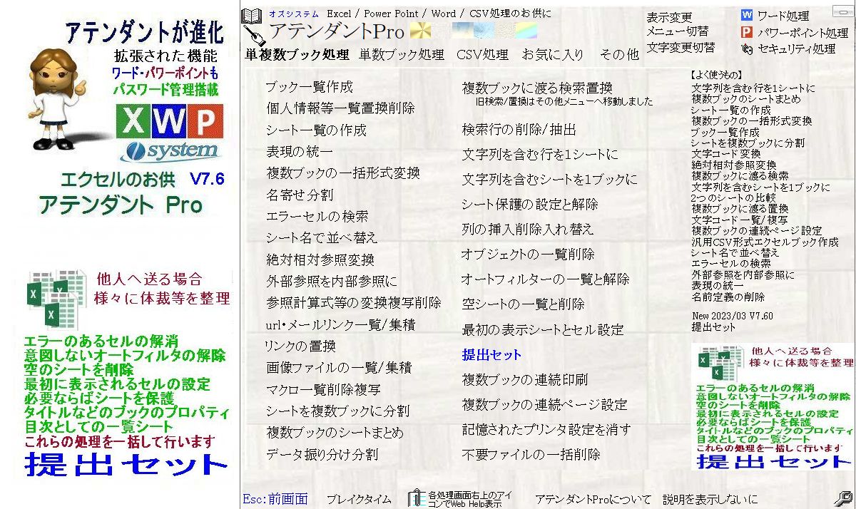 有限会社オズシステムは、2023年4月18日「エクセルのお供 アテンダントPro」をバージョンアップ。